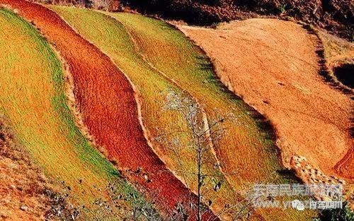色彩漂亮,地勢高,不同的角度、不同季節(jié),山坡上不同的地塊有不同的色彩。適合局部光拍攝。