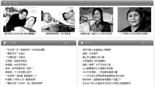 不只是中央媒體,地方媒體也同樣如此?!渡磉叺赖赂袆?65》和《德耀津城》是《今晚報》兩個道德建設(shè)的名牌新聞專欄。今年1月1日,《今晚報》繼推出《身邊好人365》、《身邊文明365》之后,又推出《身邊道德感動365》新聞專欄報道活動。該欄目延續(xù)全年式報道模式,每天報道一個身邊道德感動,挖掘身邊的典型人物和感人故事,大力弘揚真善美,積極倡導(dǎo)以德報德的良好風(fēng)尚;刊發(fā)在《德耀津城》專欄中的《孝敬父母,何時開始都不早》、《讓不幸之人生活得更好些》等報道,歌頌了一批身邊的道德榜樣,不僅在提高全體公民道德素養(yǎng)方面發(fā)揮了積極作用,而且為不斷推進市民素質(zhì)提升計劃的深入實施營造了良好的輿論氛圍。