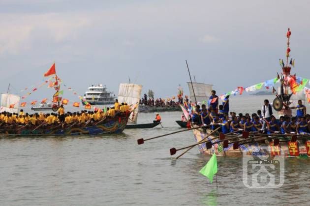 會(huì)期,家家戶戶都要接姑娘請(qǐng)客,節(jié)日隆重程度 如同過(guò)春節(jié)。大理、下關(guān)沿海的白族群眾除舉行劃船耍海對(duì)歌活動(dòng)外,還要舉行規(guī)模盛大的龍船比賽活動(dòng)。賽前,參賽的各村都要彩畫(huà)龍船,并在船上掛彩和插旗,將龍船裝扮得絢麗多姿。比賽時(shí),看誰(shuí)最先繞過(guò)海心的標(biāo)記轉(zhuǎn)回到岸邊,最先回到 者為冠軍。觀看和助戰(zhàn)的人群匯集在海邊,搖旗吶喊,為參賽龍舟助威。
