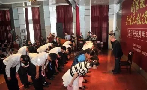 當(dāng)日上午9時許,出席“名中醫(yī)吳生元教授經(jīng)驗傳承暨行醫(yī)56周年學(xué)術(shù)研討會”的眾多嘉賓,共同見證了中醫(yī)傳統(tǒng)拜師儀式。