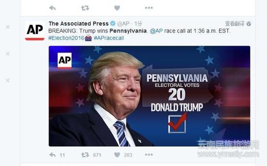 截至記者發(fā)稿時(shí),特朗普已經(jīng)拿下274張選舉人票,領(lǐng)先于希拉里的218張選票。