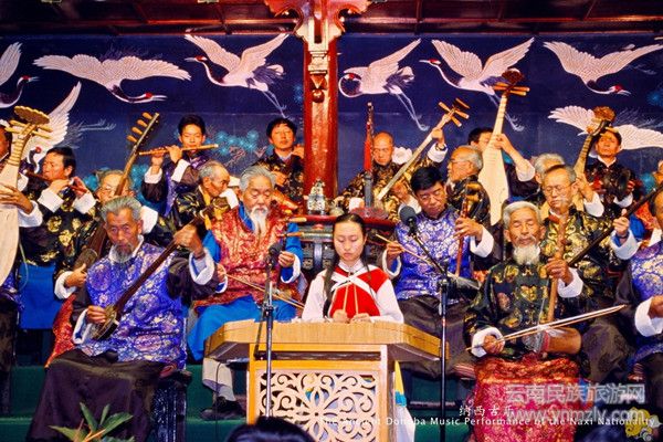 麗江納西人歷來(lái)重教尚文,許多人擅長(zhǎng)詩(shī)琴書(shū)畫(huà)。在古城多彩的節(jié)慶活動(dòng)中,除了民族歌舞和鄉(xiāng)土戲曲,業(yè)余演奏的“納西古樂(lè)”最為著名。納西古樂(lè)中,最著名的是大型組曲“北石細(xì)里”,據(jù)諧音俗稱(chēng)“別時(shí)謝禮”,漢譯“白沙細(xì)樂(lè)”。白沙細(xì)樂(lè)相傳忽必烈當(dāng)年南征過(guò)麗江,納西酋長(zhǎng)麥良到渡口相迎,二人結(jié)為知交。臨別時(shí),忽必烈留下半支樂(lè)隊(duì),他們與納西樂(lè)工共同創(chuàng)作的。