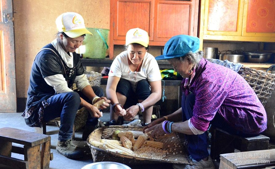 李文斯剛從地里收完玉米回家,和我們閑聊之余,手也沒閑著。一面將一粒粒飽滿的玉米剝下,一面熱情的回答我們的問題。