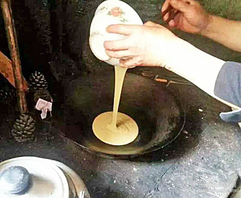 不過(guò)也并不是所有人家的蕎麥都落入豬口,像我這樣家境貧寒的窮苦人家,與豬爭(zhēng)食,在所難免。食用蕎麥,就像種植蕎麥一樣簡(jiǎn)單易做,將磨好的蕎麥面放入方便攪動(dòng)的大湯碗中,向碗里逐步注入涼水,用筷子攪勻,稀稠度以能夠流暢倒出為宜?;鹨膊恍枰?,隨便找?guī)字芍﹄s柴燃起,架上鍋,待鍋熱下料,蕎稀在鍋底自然攤開(kāi),隨著水汽的蒸發(fā),蕎粑表面開(kāi)始出現(xiàn)蜂窩狀氣泡小孔,待表面稍干,蕎稀不再流動(dòng)為宜,用菜刀刀刃將蕎粑與鍋底分離,迅速用手托住蕎粑底部將其翻個(gè)面,繼續(xù)烘烤,兩分鐘后起鍋即食。有蜂蜜的蘸點(diǎn)蜂蜜,沒(méi)有的來(lái)點(diǎn)麥芽糖稀,或是白砂糖,窮苦人家,弄點(diǎn)老醬蘸蘸也能管飽解饞。