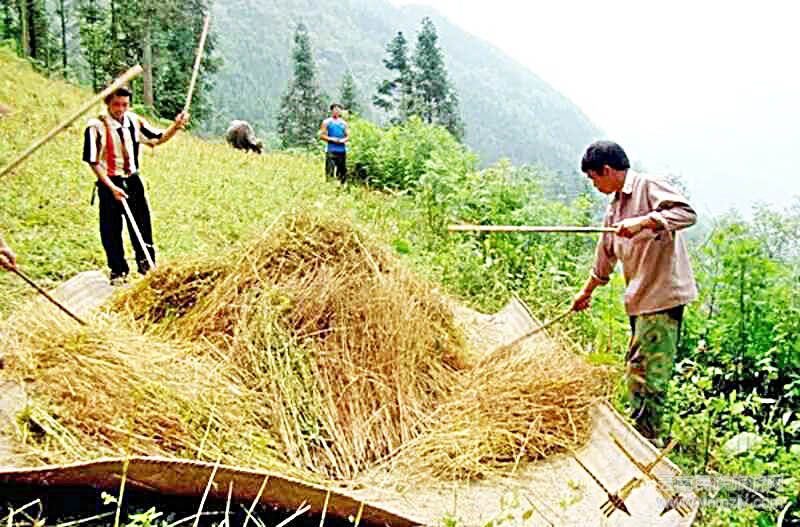 作為烏蒙山區(qū)的宣威人來說,苦蕎粑粑最讓人們記憶猶新,對于農(nóng)村的苦命孩子,它雖然不像洋芋一樣一日三餐與我們相伴,但出門在外,下地勞作,遠門上學,它通常是我們的美味餉午和路上盤纏。蕎麥,它對土壤要求不高,喜涼,生長周期短,當它遇上洋芋,蘿卜的時候,卻是農(nóng)作物中的絕佳拍擋。適合洋芋生長的烏蒙山區(qū),8月份收完洋芋,將合著磷肥的蕎麥白蘿卜籽撒在地表,用五齒釘鈀隨便抓蓋一下(蕎麥芽頂土力差,埋深了它出不了土),等待的就是10月份的收割,中途幾乎不用你照看打理。待收割完蕎麥,留下蘿卜苗,可長到來年春耕,它又是當?shù)匚桂B(yǎng)土豬的上好飼料。勤勞聰明的宣威人充分利用了它們哥三的生長周期和特點,大面積種植并充分提高了土地的利用率。蕎麥這個“懶漢”莊稼,只要雨水充足,不遇上蟲災,吸收點洋芋生長留下的余肥,豐收是注定的。它不像谷子,玉米等“高大上”的農(nóng)作物從初春的梨田鈀地,夏天的除草捉蟲,到深秋的擇時收獲那樣耗費農(nóng)戶大量的時間、經(jīng)歷和心血。或許是得來的簡單,它在當?shù)氐氖匙V上并不被放在首要的位置,通常是用作豬飼料居多。也許因為當時人們都不富裕,油水欠缺,缺乏油水滋潤的胃腸并不太喜歡味苦涼寒的苦蕎,所以大部分時間把它送給了豬,這個宣威土豬也是悶頭享受,洋芋,蕎麥,大蘿卜,或許也是成就了宣威火腿,宣威小炒肉美味、美名的根本原因。