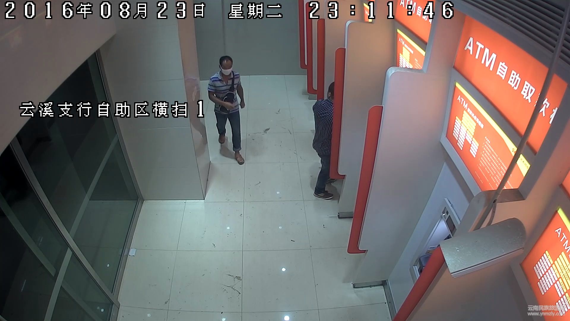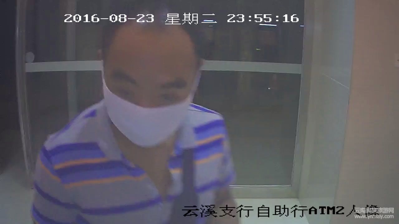 在官渡區(qū)小板橋中街農(nóng)村信用社云溪支行提供的視頻監(jiān)控中,23日晚23點52分,一輛拉客的電單車來到自助銀行門口。在付了電動車車費(fèi)后,一個上身穿條紋上衣、下身穿牛仔褲的男子四顧無人后,從口袋里掏出一個白口罩戴上,之后迅速走到自助銀行里,在柜員機(jī)上取走了一沓錢。間隔不久,零點已過,該男子再次回到柜員機(jī)上取錢。