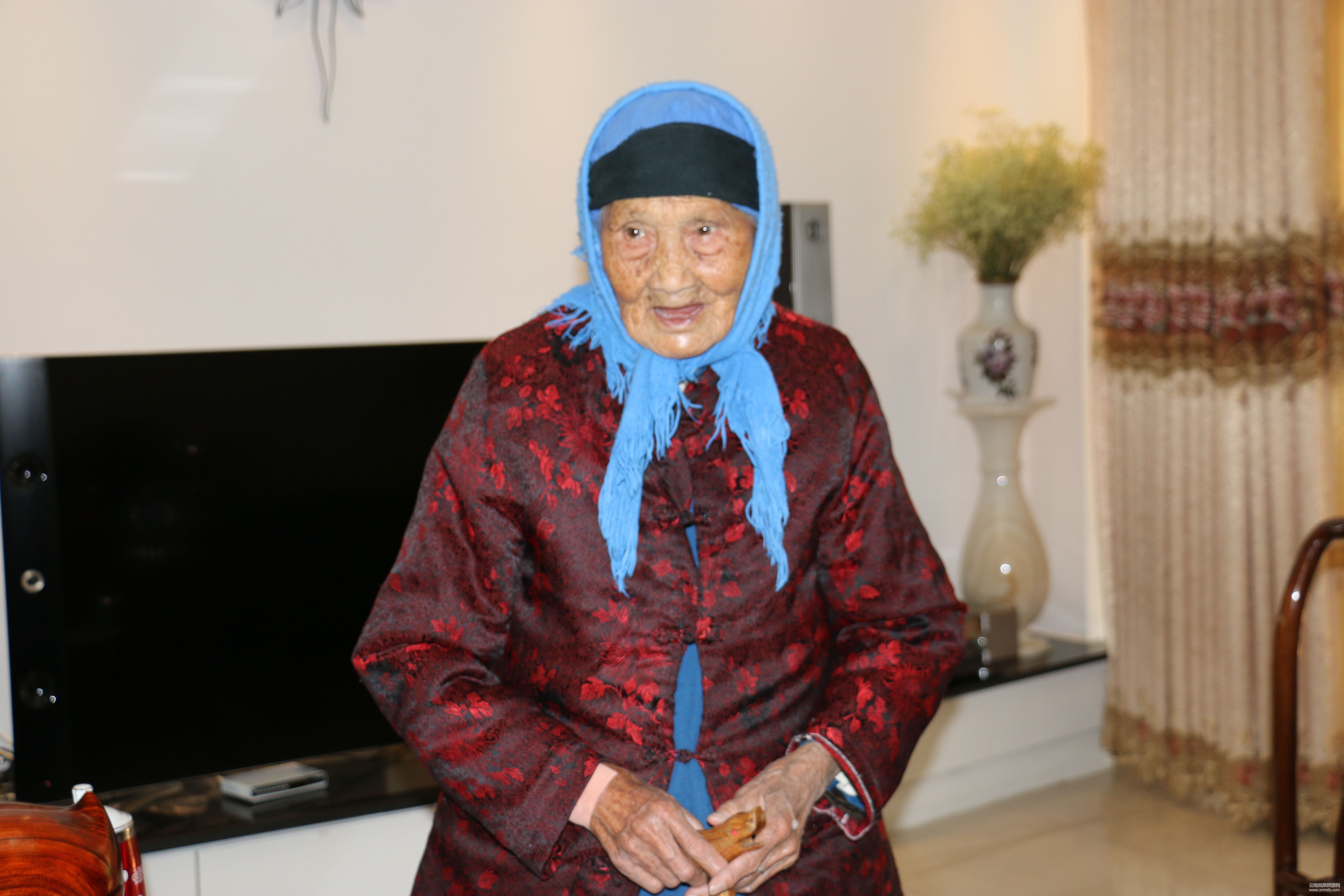 現(xiàn)在,老人已經(jīng)是五世同堂,有4個子女、12個孫子女、10個重孫和6個曾孫。2014年的重陽節(jié),云南省省長李紀恒專門去看望慰問了老人,和這個五世同堂的家庭合影。這張照片,老人經(jīng)常拿出來看,還經(jīng)常叨念著:“政府關(guān)心老人,太好了!”
