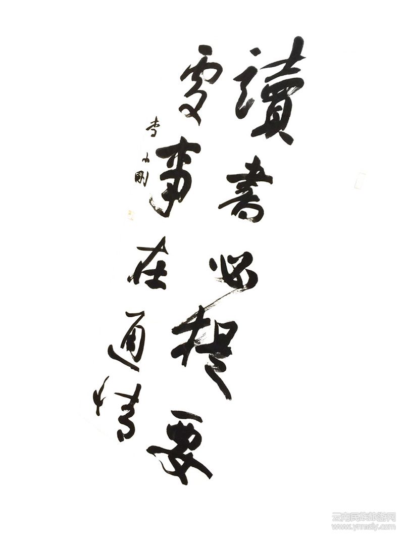 李小剛崇尚自然,敬畏自然,以一種淳樸的方式體悟自然,這樣的理念貫穿于他的書法藝術(shù)追求,故他的作品不著俗痕。他的作品,剛勁有力,骨力畢現(xiàn),又不乏鮮明的個(gè)性特色,往往把人帶入一種特有的意境,令人賞心悅目。