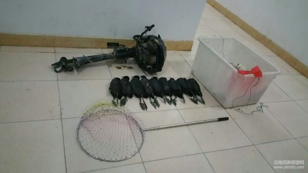 2016年12月19日夜,洱海派出所接到110指揮中心指令:有群眾報警稱,在海東觀音閣旁用電捕魚。接警后,洱海派出所民警迅速與報警人取得聯(lián)系,了解詳細情況。在洱海管理局綜合執(zhí)法大隊海東中隊的協(xié)助下,抓獲1名嫌疑人,查獲9只毒死的野生水鳥和1艘漁船。