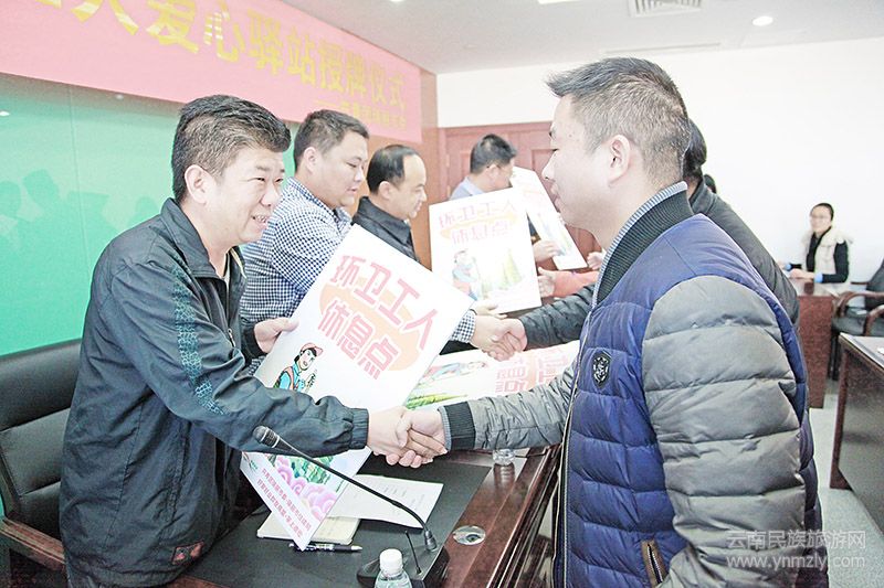 本報(bào)訊(通訊員 杜軍)1月10日下午,共青團(tuán)瑞麗市委、瑞麗市住建局、瑞麗市好家好業(yè)聯(lián)盟聯(lián)合舉行“關(guān)愛環(huán)衛(wèi)工人愛心驛站授牌儀式”,為首批130個(gè)商家環(huán)衛(wèi)工人休息點(diǎn)授牌。今后,環(huán)衛(wèi)工人將可到貼有“環(huán)衛(wèi)工人休息點(diǎn)”的商家休息,緩解辛勤勞累。