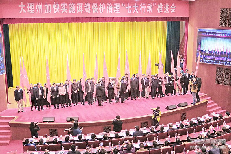 大理州政府副州長(zhǎng)楊承賢在推進(jìn)會(huì)上宣讀了《中共大理州委辦公室大理州人民政府辦公室關(guān)于成立洱海保護(hù)治理“七大行動(dòng)”指揮部和派駐工作隊(duì)的通知》,中共大理州委、州政府向大理州洱海保護(hù)治理“七大行動(dòng)”指揮部和16支工作隊(duì)授牌授旗。