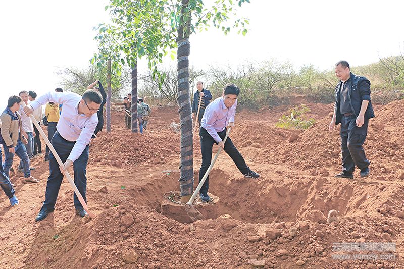 植樹現(xiàn)場氣氛熱烈,龐俊、姜偉、趙雄、李旭東、李堂興以及蒙自市在家的實職副處級以及領(lǐng)導(dǎo),各鄉(xiāng)鎮(zhèn)、各部委辦局主要負責(zé)人、干部職工100余人共同參加了義務(wù)植樹活動。大家分工合作,有的挖坑、有的扶苗、有的覆土、有的澆水,一棵棵樹苗在全體勞動者手中“站”了起來,迎風(fēng)招展,點綴荒山,帶來一絲絲涼意。