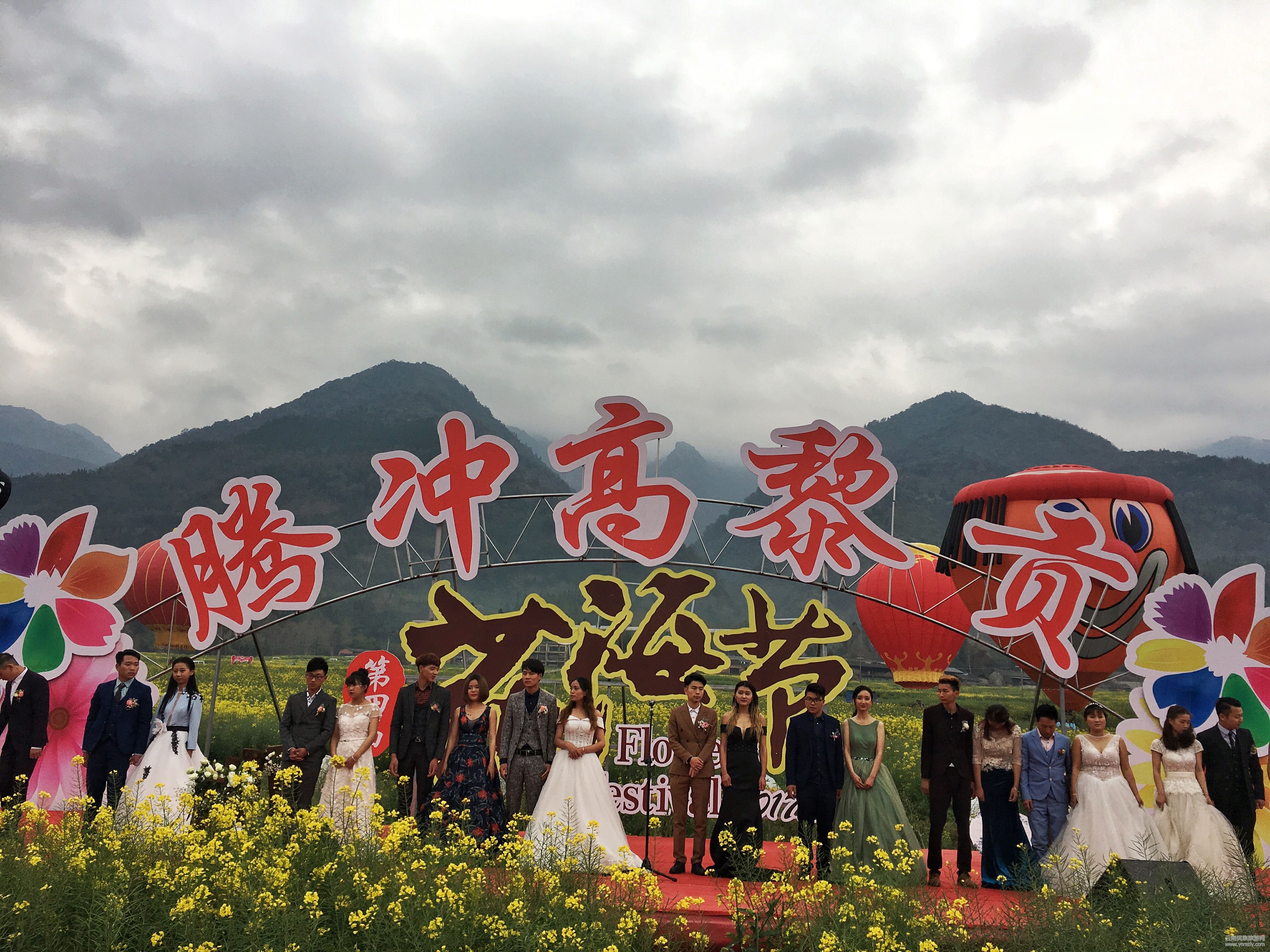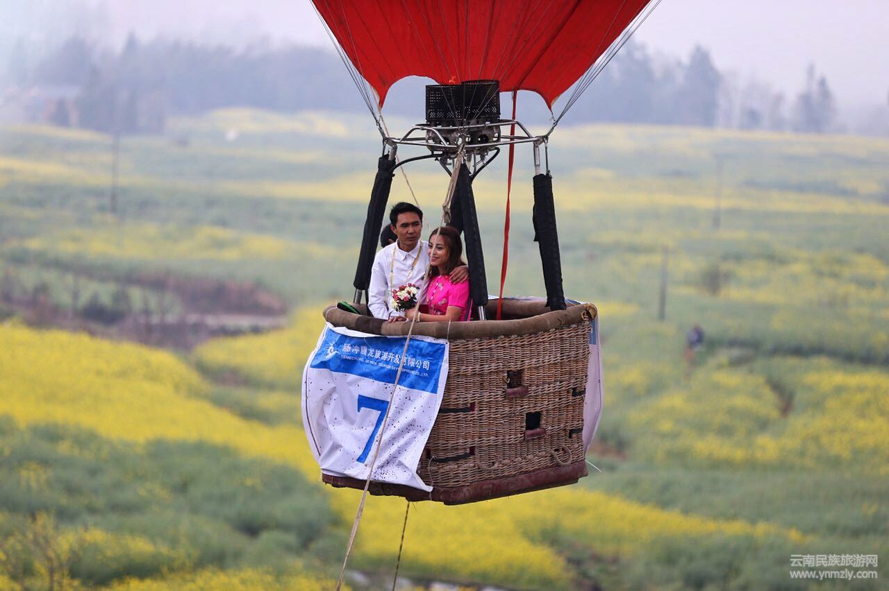 云南民族旅游網(wǎng)訊:3月11日,第四屆騰沖高黎貢花海節(jié)系列活動(dòng)“首屆熱氣球嘉年華暨界頭花??罩谢槎Y”在界頭鎮(zhèn)楊家山腳村15萬畝油菜花海中啟幕。來自緬甸、省內(nèi)外的16對(duì)新人現(xiàn)場(chǎng)舉行熱氣球集體婚禮,讓萬畝花海見證忠貞的愛情,許下一生相守的諾言。