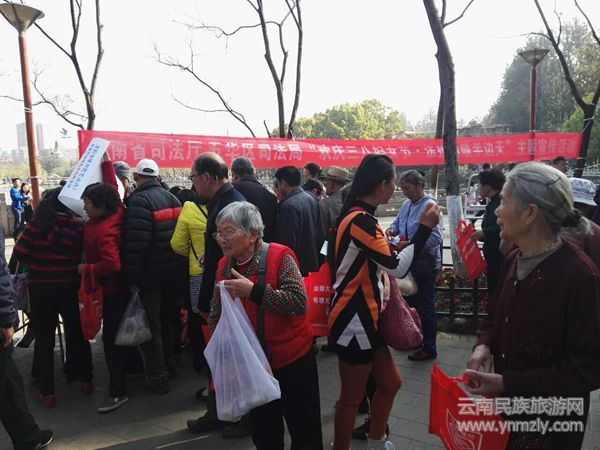 云南民族旅游網(wǎng)訊:為了慶祝一年一度的“三八”國際勞動婦女節(jié),進一步增強全社會通過法律援助手段維護婦女合法權(quán)益的意識,提高廣大婦女依法維權(quán)能力,云南省司法廳、昆明市五華區(qū)司法局、華山司法所以“三八”國際婦女節(jié)為契機,3月8日在翠湖公園開展了法律援助專項宣傳活動。