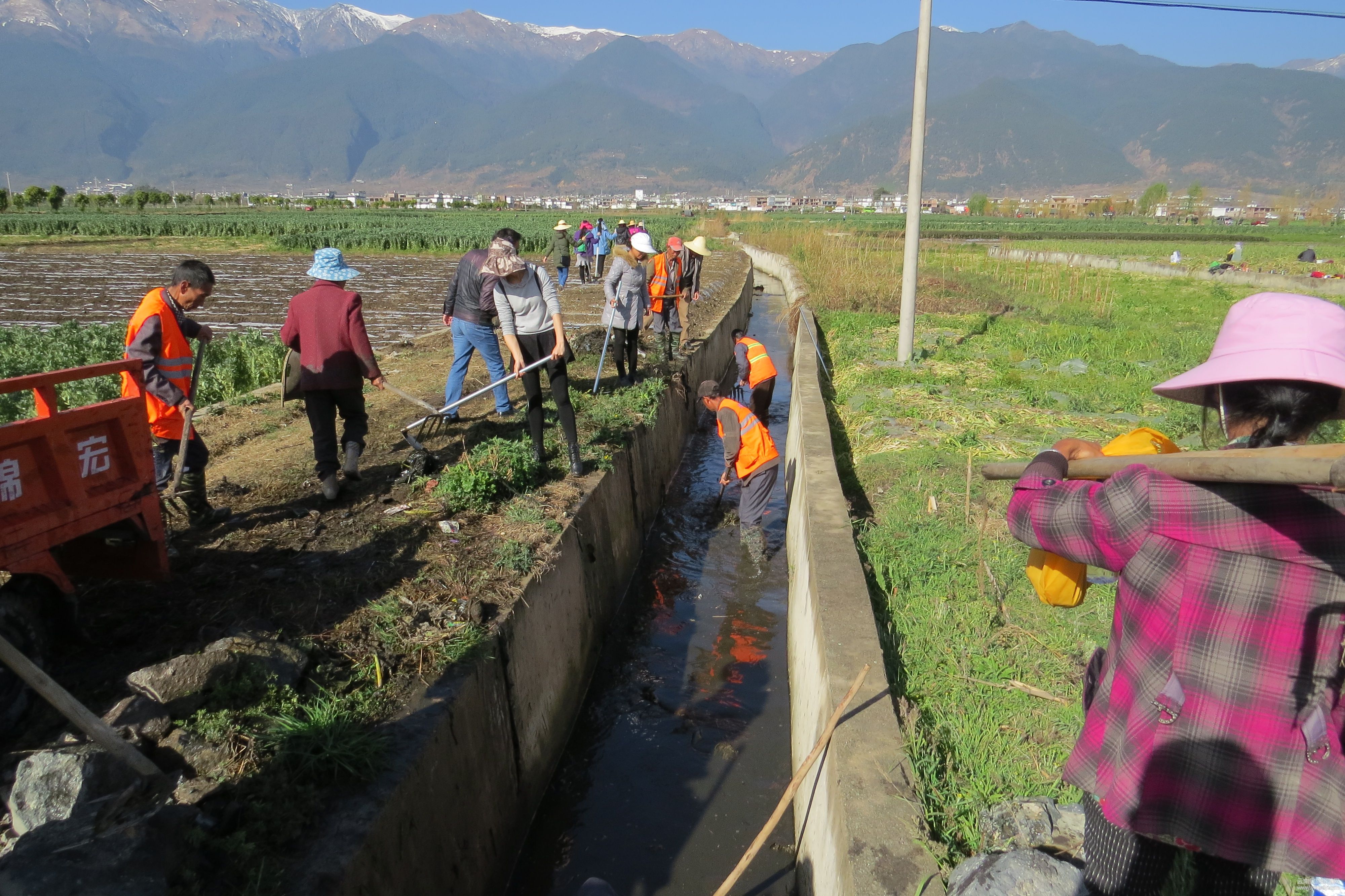據(jù)統(tǒng)計(jì), 7輛農(nóng)用拖拉機(jī)拉支清理田間地頭垃圾近30噸,清除淤泥20余噸,共清理清除垃圾和淤泥近60噸。