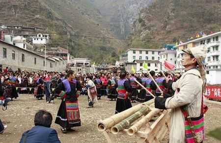 在每年桃花盛開的時候,勒墨人都要舉行一次隆重的祭祀活動。勒墨人過“三月節(jié)”很隆重,也很虔誠,每家都提前殺雞、宰羊、舂秈米粑粑、準(zhǔn)備酒、肉等豐盛食品。