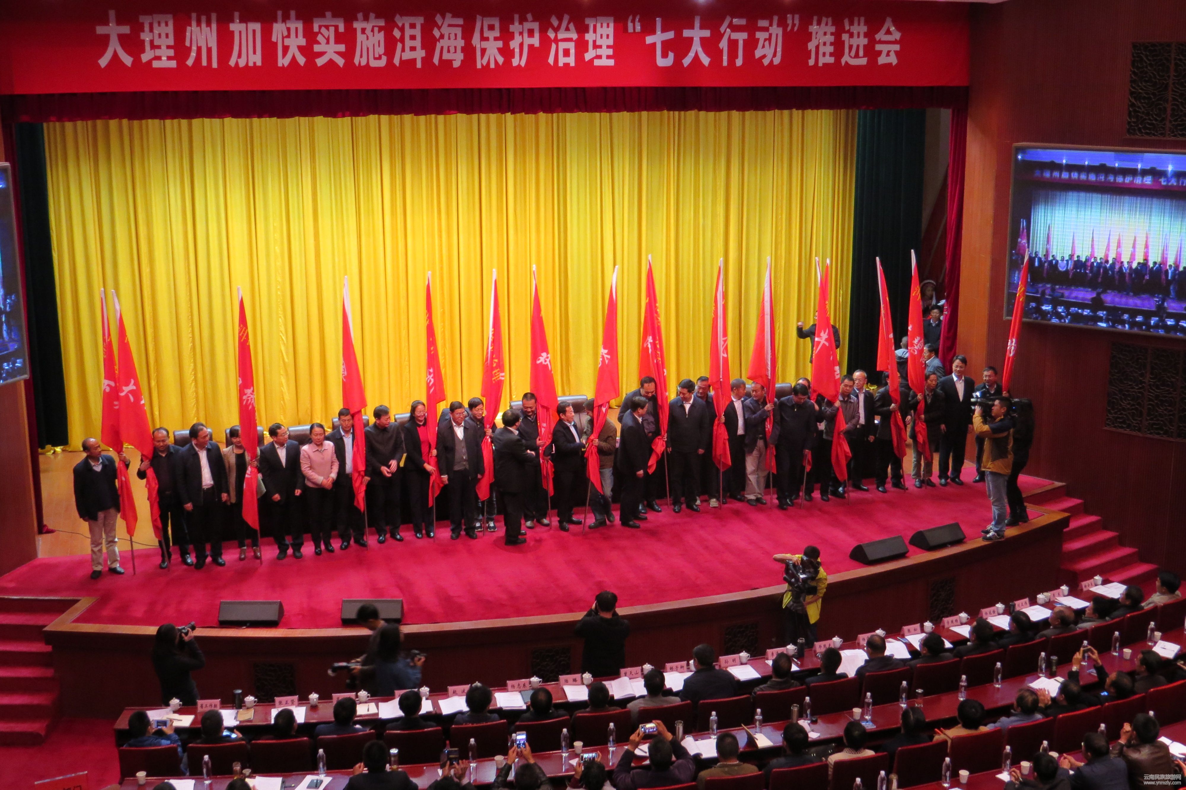 大理州政府副州長楊承賢在推進會上宣讀了《中共大理州委辦公室大理州人民政府辦公室關(guān)于成立洱海保護治理“七大行動”指揮部和派駐工作隊的通知》,中共大理州委、州政府向大理州洱海保護治理“七大行動”指揮部和16支工作隊授牌授旗。