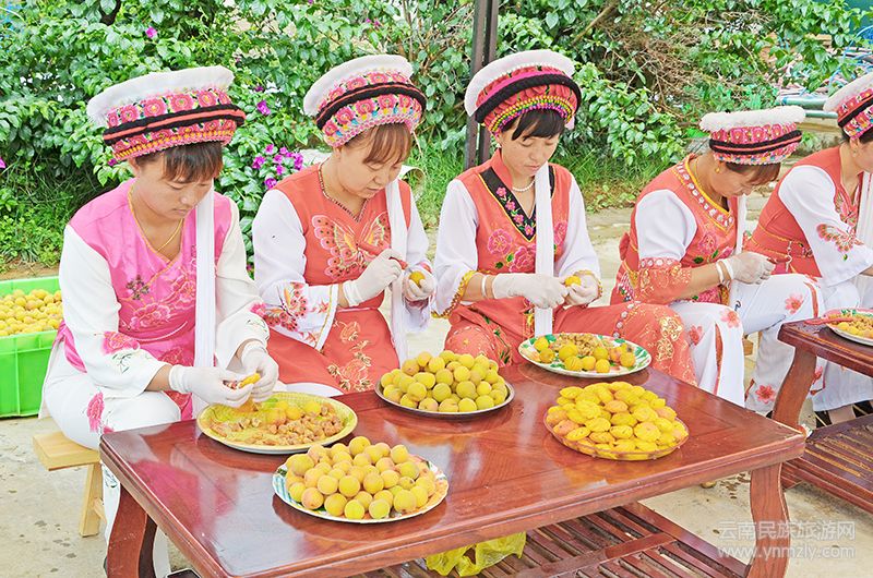 “梅樹為嫁妝,分家7先分梅園,老人養(yǎng)老有‘私房梅子樹’已成為這里的彝家新風??梢赃@樣說,梅樹是我們脫貧、致富的‘搖錢樹’”羅康福自豪地說道。以梅子為主的經(jīng)果產(chǎn)業(yè),是松鶴村得天獨厚的特色生態(tài)支柱產(chǎn)業(yè)。這里盛產(chǎn)的梅子肉厚、核小、味佳,適宜于加工成各種梅子系列果脯產(chǎn)品,彝家人的雕梅、話梅、青梅酒是待客的上好佳品。