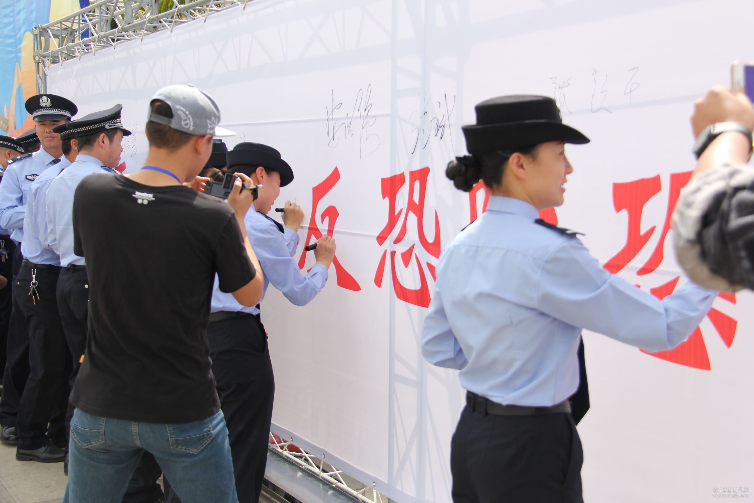 “這個(gè)是在做什么的?”“我來一本手冊(cè)吧。”“這些器材是用來做什么用的呢?” 4月16日,紅河學(xué)院體育館前人頭攢動(dòng),紅河哈尼族彝族自治州《反恐怖主義法》“六進(jìn)”宣傳暨“進(jìn)校園”主題活動(dòng)啟動(dòng)儀式的主會(huì)場(chǎng)設(shè)立于此。通過主會(huì)場(chǎng)與各縣市設(shè)立的分會(huì)場(chǎng),紅河州市兩級(jí)反恐怖工作領(lǐng)導(dǎo)小組及成員單位相關(guān)代表、全州大中小學(xué)校師生代表、公安民警及武警官兵共2萬余人參加儀式。
