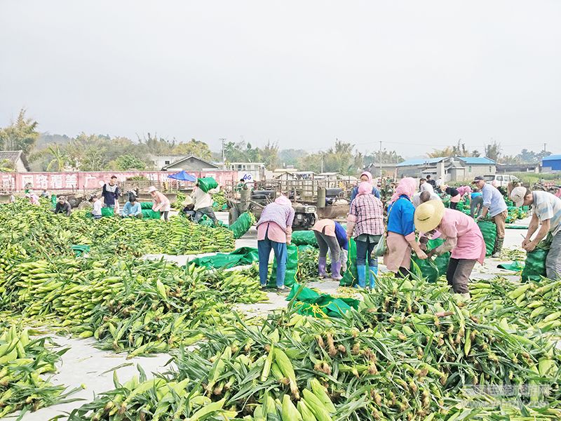 這是日前記者來到陽光明媚的戶弄村委會,在芒市宏聚農(nóng)業(yè)科技開發(fā)有限公司大院內(nèi)看到的一組鏡頭。大院內(nèi),運(yùn)輸蔬菜的拖拉機(jī)來來往往,有的運(yùn)輸包谷,有的運(yùn)輸西葫蘆,有的運(yùn)輸西蘭花,一片繁忙。記者數(shù)了數(shù),僅運(yùn)輸甜脆包谷的拖拉機(jī)在場內(nèi)就有24輛,大家都像馮二喊夫婦一樣,滿臉的幸福。