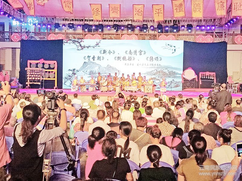 來(lái)自四川省西昌市邛都洞經(jīng)古樂(lè)團(tuán),文山州廣南縣壯鄉(xiāng)禮樂(lè)團(tuán),昆明市嵩明縣洞經(jīng)禮樂(lè)團(tuán),紅河州內(nèi)開(kāi)遠(yuǎn)市洞經(jīng)音樂(lè)協(xié)會(huì)、建水縣洞經(jīng)協(xié)會(huì)、通??h妙善學(xué)女子洞經(jīng)月光古樂(lè)協(xié)會(huì)、石屏縣洞經(jīng)音樂(lè)協(xié)會(huì)及蒙自本地的洞經(jīng)樂(lè)團(tuán)共十一支洞經(jīng)樂(lè)團(tuán),先后演奏了《開(kāi)經(jīng)贊》《龍鐘震》、《禮樂(lè)滿(mǎn)堂紅》、《新令》《南清宮》《賀圣朝》《倒拖船》《轉(zhuǎn)頌》、《水落音》、《一笛簫》《重鏡光》等精彩節(jié)目,為市民獻(xiàn)上了一場(chǎng)精彩紛呈的洞經(jīng)音樂(lè)展演。