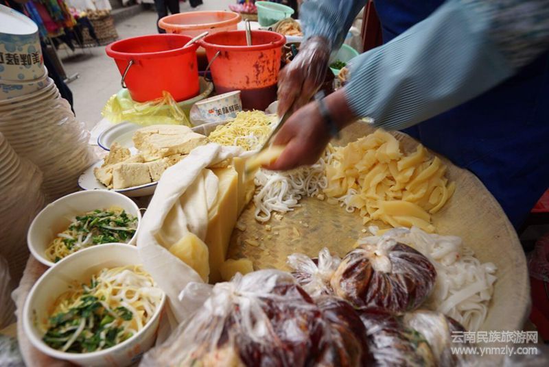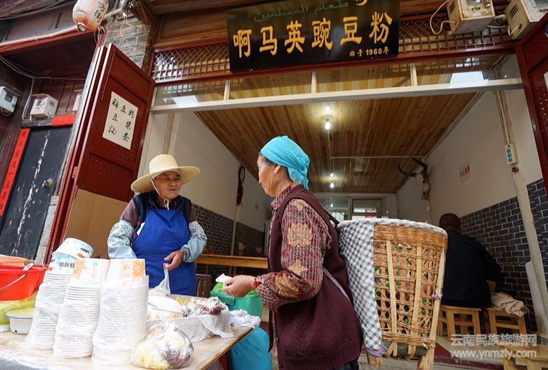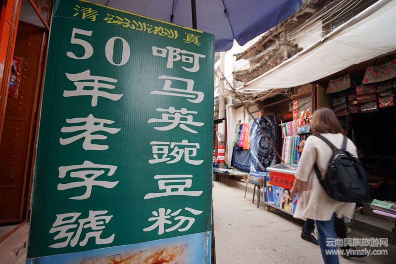 在大理喜洲鎮(zhèn)古城四方街旁,有家“啊馬英豌豆粉”小店,遠近聞名,豌豆粉相當好吃。