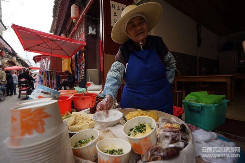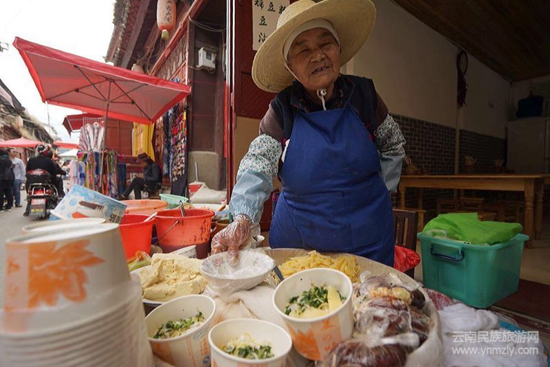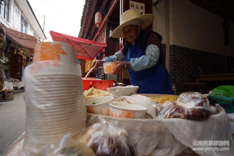 老奶奶雖然在大理旅游景點之一的喜洲古鎮(zhèn)賣豌豆粉,但對顧客一視同仁,不論大人小孩,也不管本地人還是外地人,也不看淡季旺季,每碗都是賣五元。不會因游客就多要,本地人就少要。