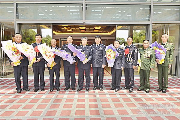 5月20日,赴京受表彰代表載譽(yù)回昆并參加在省公安廳召開的座談會,省委常委、副省長、省委政法委書記張?zhí)?,省公安廳黨委書記、廳長任軍號,省公安廳黨委副書記、常務(wù)副廳長董家祿,省公安廳黨委委員、省紀(jì)委駐公安廳紀(jì)檢組組長岑化虎等領(lǐng)導(dǎo)出席會議,并就學(xué)習(xí)貫徹習(xí)近平總書記接見時的重要講話精神及本次表彰大會精神,大力弘揚(yáng)英雄模范立功集體的先進(jìn)事跡與他們進(jìn)行座談。