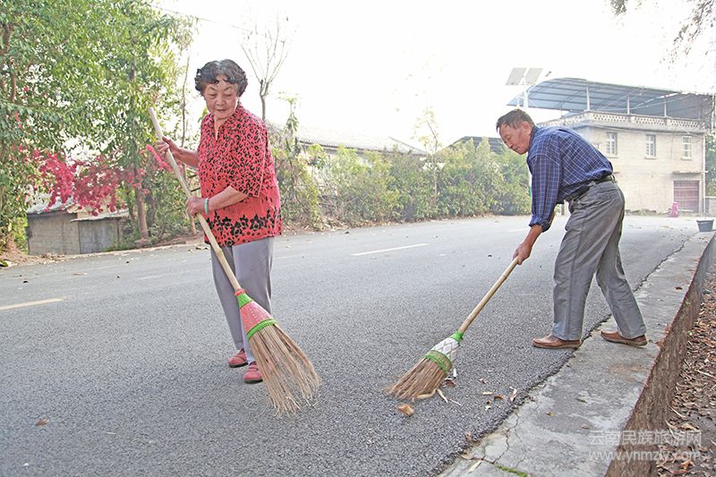 每天早上8點(diǎn),家住瑞麗市畹町經(jīng)濟(jì)開發(fā)區(qū)國防路的徐文巧大媽準(zhǔn)時拿起掃把出門清掃街道,看到老伴兒出門,聶其成大爹也拿起掃把跟著出門。不論刮風(fēng)下雨,國防路上段都能看到他倆的身影,這里因他倆而干凈整潔。
