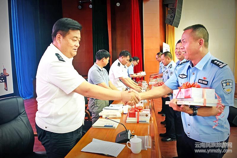 楚雄州公安局黨委班子成員、州文聯(lián)主席李茂尊、民警代表、駐楚新聞媒體記者、作品創(chuàng)作人員共180人參加發(fā)布會,楚雄市公安局5個(gè)派出所、3個(gè)大隊(duì)代表基層所隊(duì)領(lǐng)取了公安文化作品。