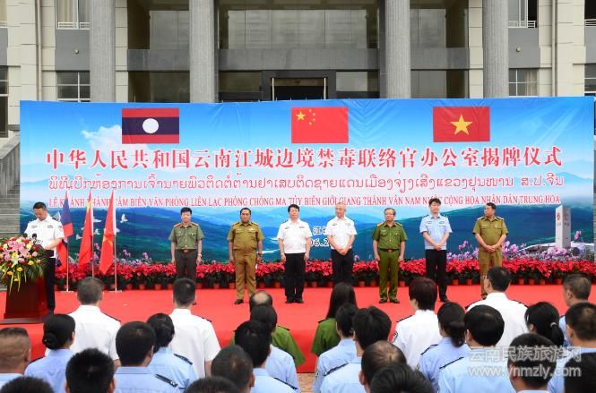 6月20日,云南江城邊境禁毒聯(lián)絡(luò)官辦公室揭牌儀式在云南省普洱市江城縣舉行。國家禁毒委員會(huì)、云南省公安廳,越南、老撾和聯(lián)合國毒罪辦等部門參加了揭牌儀式。