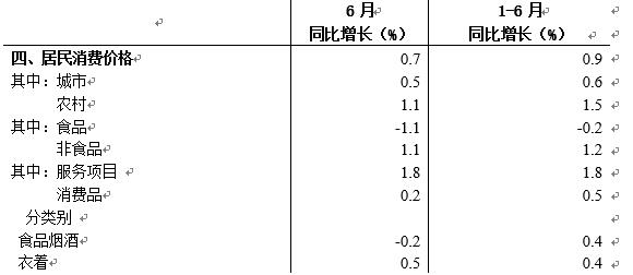 上半年全省居民消費(fèi)價格總水平上漲0.9%,漲幅比上年同期回落0.9個百分點(diǎn),比一季度回落0.2個百分點(diǎn),漲幅低于全國平均0.5個百分點(diǎn)。全省居民消費(fèi)價格總水平的平穩(wěn)運(yùn)行,為全省經(jīng)濟(jì)保持平穩(wěn)增長、改革政策的調(diào)整出臺,提供了良好運(yùn)行環(huán)境。