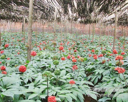 每年8月到9月份的時候,文山州的大小山坡上,就會不約而同地出現(xiàn)一道壯麗的景觀——“三年滿園紅”。經(jīng)過三年的細(xì)心耕耘、照顧、培育,當(dāng)紅彤彤的三七花開,表明三七果實已經(jīng)成熟,可以采摘賣錢了。