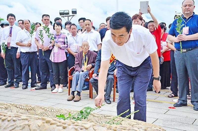 王俊強(qiáng)在儀式上致辭。他說(shuō),紀(jì)念館的建成,將為大力弘揚(yáng)南洋機(jī)工的英雄事跡,進(jìn)一步增強(qiáng)中華民族的向心力、感召力和凝聚力,不斷增進(jìn)中國(guó)和南亞?wèn)|南亞國(guó)家之間的歷史文化交流,為中國(guó)與南亞?wèn)|南亞國(guó)家的開(kāi)放合作和區(qū)域安全穩(wěn)定發(fā)揮積極的作用。他表示,紀(jì)念是為了永遠(yuǎn)銘記這段歷史,紀(jì)念是為了凝聚復(fù)興的力量。他要求,全州黨員干部和各族群眾要緊密團(tuán)結(jié)在以習(xí)近平同志為核心的黨中央周?chē)?,大力弘揚(yáng)偉大的抗戰(zhàn)精神,銘記歷史、面向未來(lái),主動(dòng)服務(wù)和融入國(guó)家“一帶一路”和孟中印緬經(jīng)濟(jì)走廊建設(shè),圍繞建設(shè)“沿邊特區(qū)、開(kāi)放前沿、美麗德宏”的總目標(biāo),共同譜寫(xiě)好中國(guó)夢(mèng)美麗德宏新篇章。