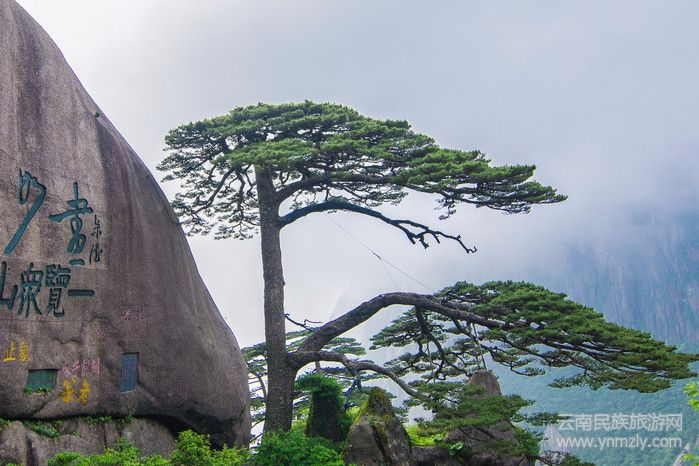 線路:黃山—白鵝嶺—黑虎松—猴子觀海—排云亭—飛來(lái)石—光明頂—天都峰—迎客松