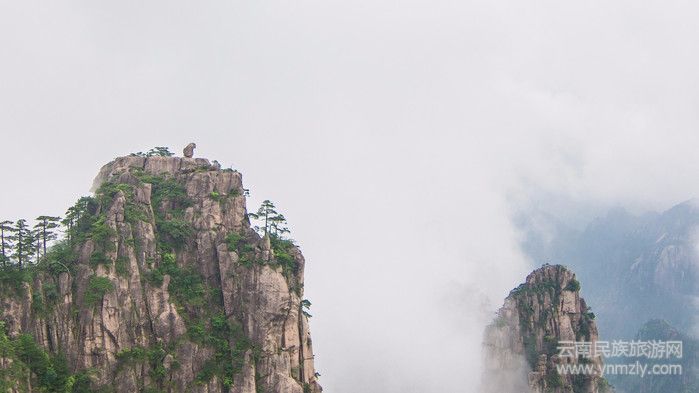 猴子觀海位于清涼臺(tái)和獅子峰之間,這三個(gè)地方在一條線,都是看日出的好地方。住在北海賓館及獅林大酒店的朋友可以在早上過(guò)來(lái),另外這里也有岔道可以下山到黃山北大門。獅子峰當(dāng)天是封閉的,而剩下的兩處觀景處也沒(méi)有達(dá)到它們上佳的觀賞效果,霧氣比較大。