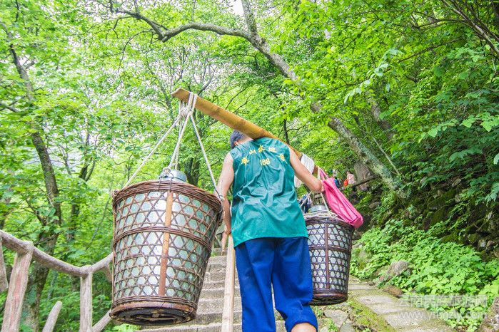 到了云谷寺可以選擇纜車和步行登山,纜車單程80元。作為一個(gè)熱愛(ài)運(yùn)動(dòng)的年輕人,而且又是典型的處女座,感覺(jué)坐了纜車就沒(méi)有了征服感,并不夠完美,所以必須是步行上山。纜車到達(dá)的站點(diǎn)設(shè)在白鵝嶺,步行到此約3小時(shí),一路上的風(fēng)景較為一般,少許的幾個(gè)亮點(diǎn)也并不夠驚艷。相比于景色,路上的挑山工更能吸引我按下快門。這里要小心千萬(wàn)不要好奇或無(wú)意的觸碰到挑山工的貨物,因?yàn)樾⌒〉慕佑|會(huì)改變貨物的重心,對(duì)他們和你來(lái)說(shuō)都相當(dāng)危險(xiǎn)。