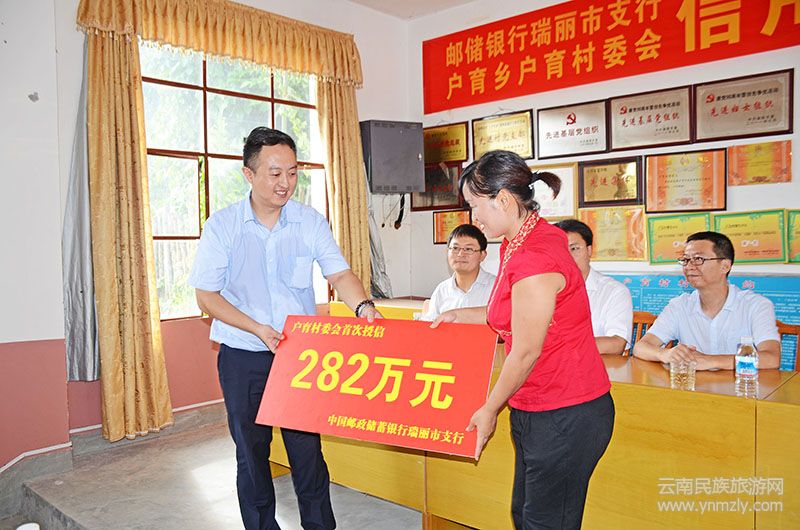 8月24日,德宏州首個郵儲銀行“信用村”落戶瑞麗市戶育鄉(xiāng)戶育村委會。在當(dāng)天舉行的授牌儀式上,30戶戶育村民喜獲首批信用貸款282萬元。