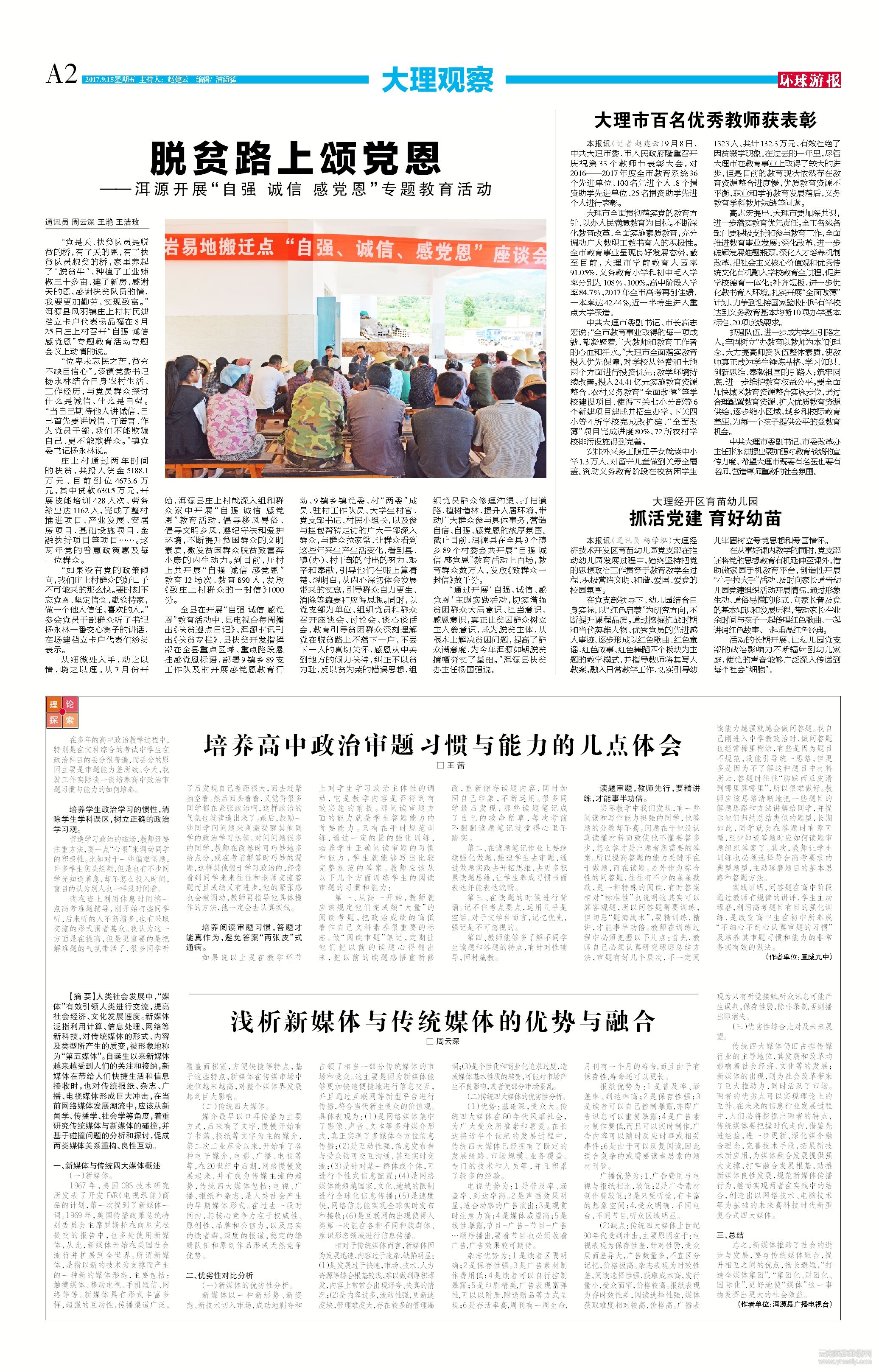 “通過開展‘自強(qiáng)、誠(chéng)信、感黨恩’主題實(shí)踐活動(dòng),切實(shí)增強(qiáng)貧困群眾大局意識(shí)、擔(dān)當(dāng)意識(shí)、感恩意識(shí),真正讓貧困群眾樹立主人翁意識(shí),成為脫貧主體,從根本上解決貧困問題,提高了群眾滿意度,為今年洱源如期脫貧摘帽夯實(shí)了基礎(chǔ)。”洱源縣扶貧辦主任楊國(guó)強(qiáng)說。通訊員 周云深 王滟 王潔玫 (文章來源環(huán)球游報(bào)2017年9月15日第1109期A2版)