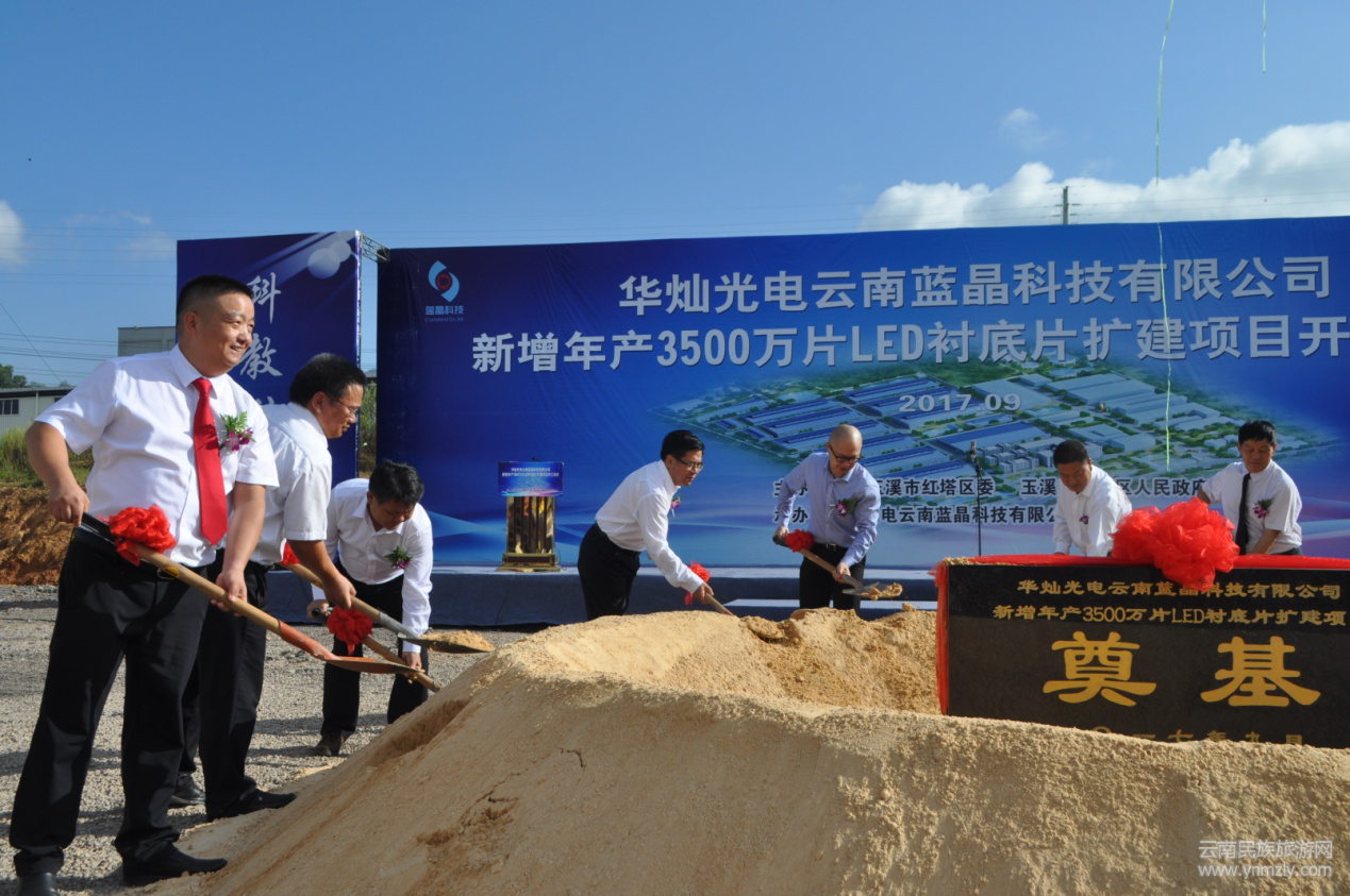 2017年9月29日,云南藍(lán)晶科技有限公司新增年產(chǎn)3500萬片LED襯底片擴(kuò)建項(xiàng)目開工奠基儀式在玉溪市紅塔區(qū)北城舉行。