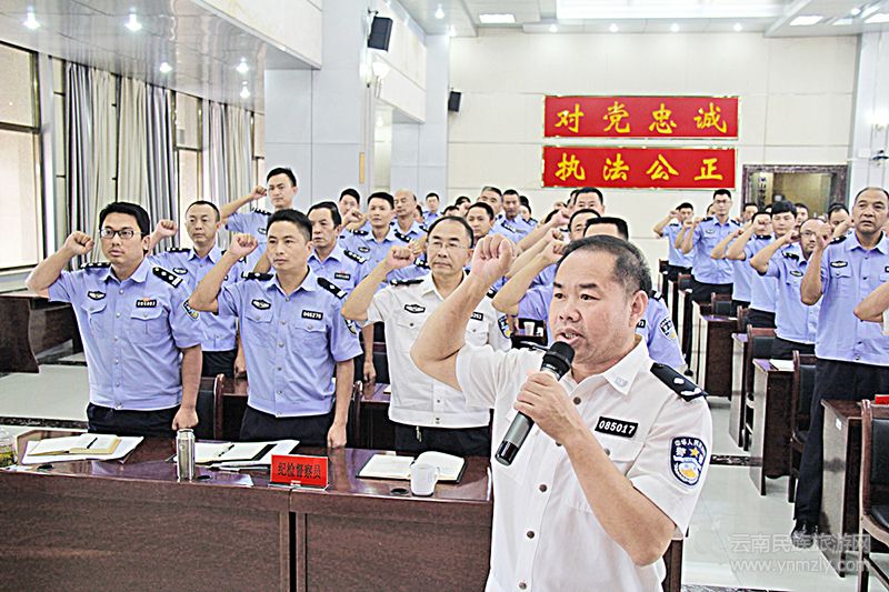 集體宣誓這一場景,是近日保山公安召開“大監(jiān)督”格局啟動儀式暨鐵腕治鐵警迎接十九大忠誠保平安動員大會的一個部分。當(dāng)天的會上,保山市副市長、市公安局長高兵全面介紹了這一做法。