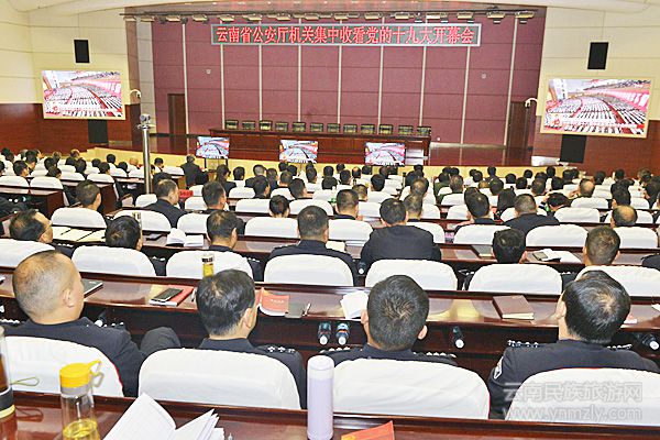 10月18日上午,中國共產(chǎn)黨第十九次全國代表大會在人民大會堂召開,云南公安機(jī)關(guān)5.9萬余名民警輔警在各自單位集中收聽收看十九大開幕會盛況。省公安廳黨委委員帶頭參加集中收聽觀看,各級公安機(jī)關(guān)科、所、隊一線執(zhí)勤執(zhí)法警務(wù)站、值班備勤巡邏民警利用執(zhí)勤間隙通過手機(jī)、廣播、電視、網(wǎng)絡(luò)等收聽觀看。