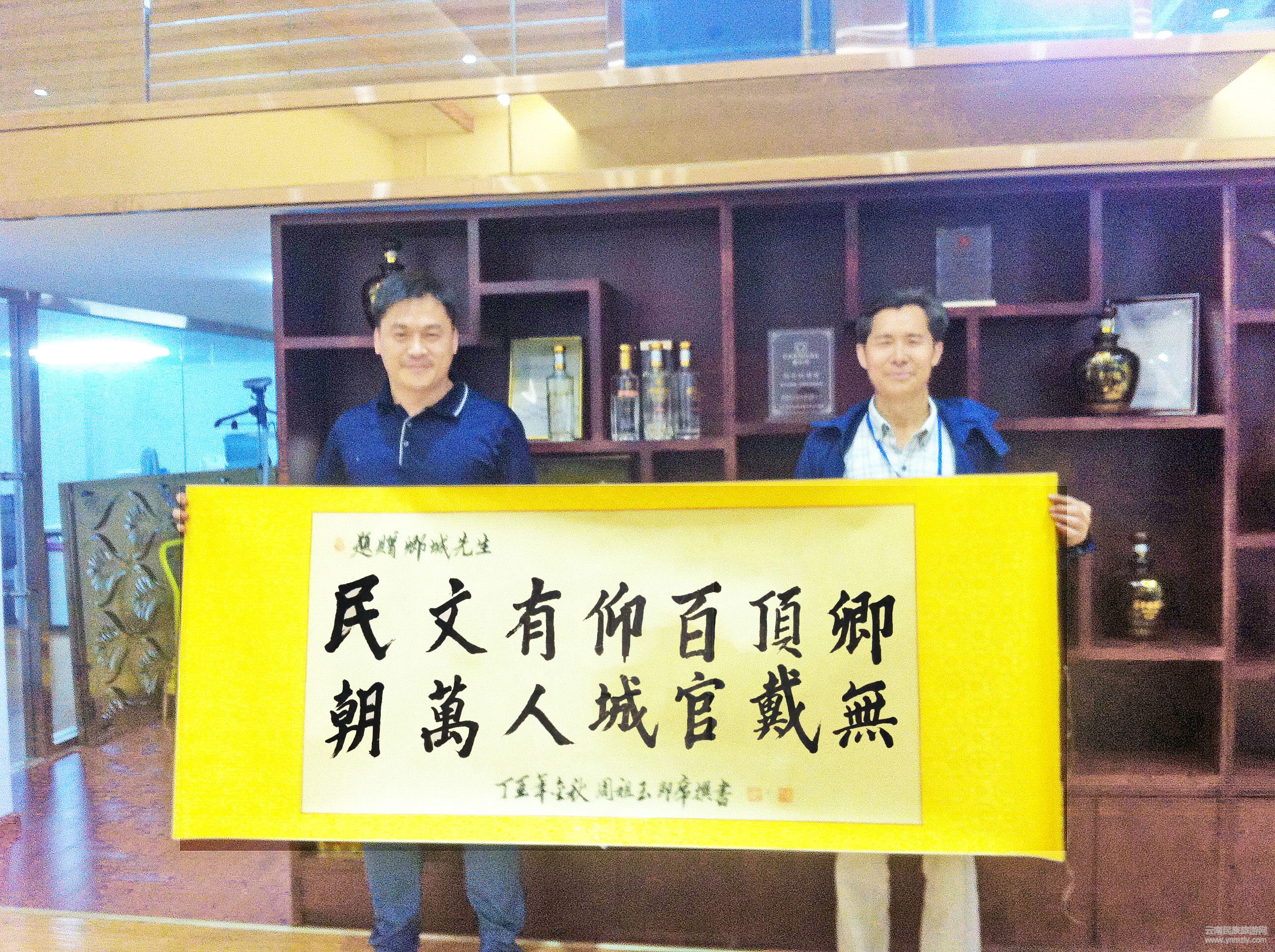 就以給H.M名品匯卿城董事長(zhǎng)撰著的“卿無頂戴百官仰;城有人文萬民朝”的對(duì)聯(lián)來說吧。卿城經(jīng)商近二十年,在社會(huì)大學(xué)和世界商海中幾起幾落,短短幾年,資產(chǎn)從兩三百元積累到數(shù)億元,由于受金融風(fēng)暴的影響,數(shù)億資產(chǎn)很快大幅縮水。經(jīng)時(shí)濟(jì)世,卿城轉(zhuǎn)型做分享經(jīng)濟(jì)。在幾經(jīng)摔打中,卿城的德行修養(yǎng)、經(jīng)營(yíng)理念、處世技巧和文化積淀等方面,都得到了明顯的提高,逐漸成熟成出類拔萃之輩。誠(chéng)然與之往來的人不少。周祖玉與卿城盡管是初次見面,僅經(jīng)過簡(jiǎn)短的交談和觀色察言,就將卿城先生的形神刻畫得惟妙惟肖。真不愧是對(duì)哲學(xué)、社會(huì)學(xué)、預(yù)測(cè)學(xué)、行為科學(xué)有所研究和參加過《當(dāng)代中國(guó)》巨著撰稿的知名作家,情智如泉水奔流,書聯(lián)似珠玉合壁,讓人肅然起敬。