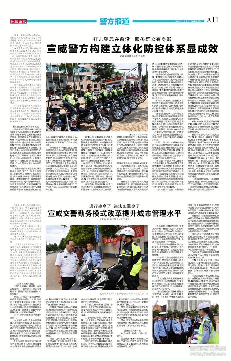 宣威市公安局以全省公安機關“迎接十九大、忠誠保平安、跨越式發(fā)展、鐵警勇爭先”主題教育實踐活動契機,積極順應經(jīng)濟發(fā)展和民生需要,對全市治安巡邏防控工作進行提檔升級,進一步改革立體化防控警務機制,創(chuàng)新勤務模式,優(yōu)化資源配置,全面提高全市公安機關在動態(tài)復雜社會治安環(huán)境下預防、打擊、控制違法犯罪活動的能力。著力構建專業(yè)化、網(wǎng)格化、信息化、標準化、合成化,點線面結合、人物技三防結合、打防管控結合,全方位、全天候、立體化的主城區(qū)社會治安防控體系。