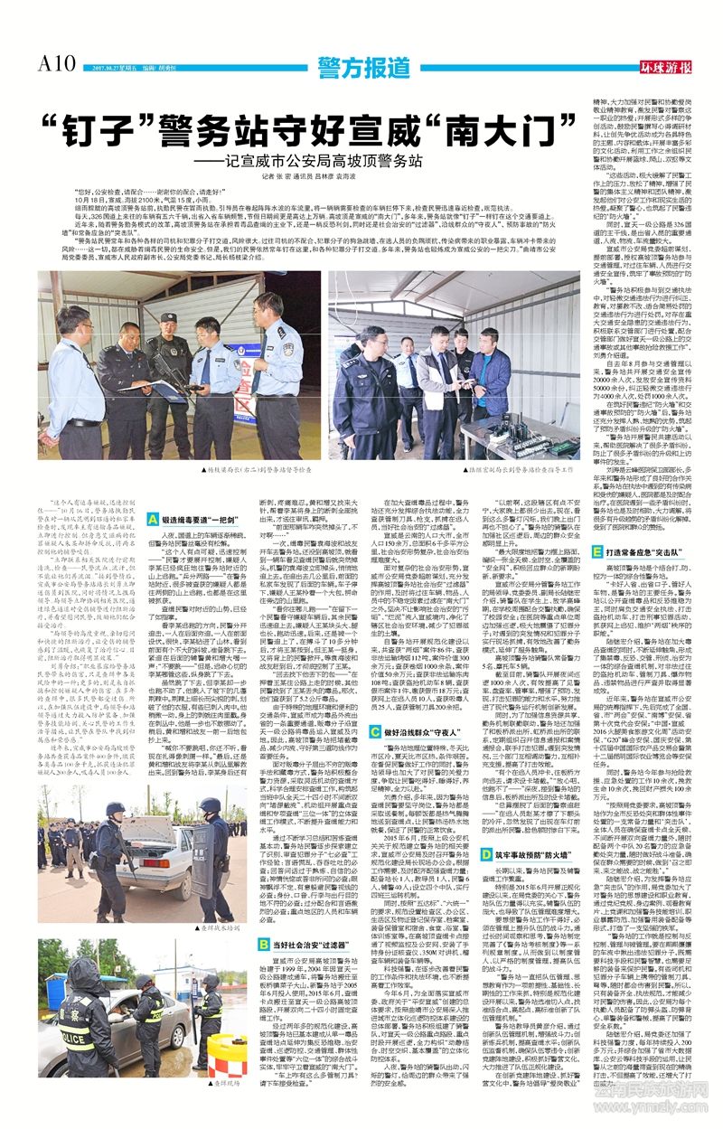 經(jīng)過兩年多的規(guī)范化建設(shè),高坡頂警務(wù)站已基本建成從單一毒品查緝站點(diǎn)延伸為集反恐維穩(wěn)、治安查緝、巡邏防控、交通管理、群體性事件處置等“六位一體”的綜合戰(zhàn)斗實(shí)體,牢牢守衛(wèi)著宣威的“南大門”。