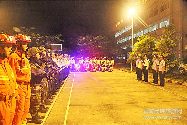 當(dāng)天凌晨零時(shí)整,誓師隊(duì)伍集結(jié)完畢,參加啟動(dòng)儀式的全體公安民警、武警、消防官兵個(gè)個(gè)警容嚴(yán)整,精神抖擻,士氣飽滿。零時(shí)20分,普洱市副市長(zhǎng)、市公安局局長(zhǎng)張堯貴一聲令下,宣布一級(jí)勤務(wù)機(jī)制正式啟動(dòng),全體參戰(zhàn)人員迅速登車,100余輛警車警燈閃爍,猶如鐵甲奔涌,駛?cè)胫行某菂^(qū)開展武裝巡邏。