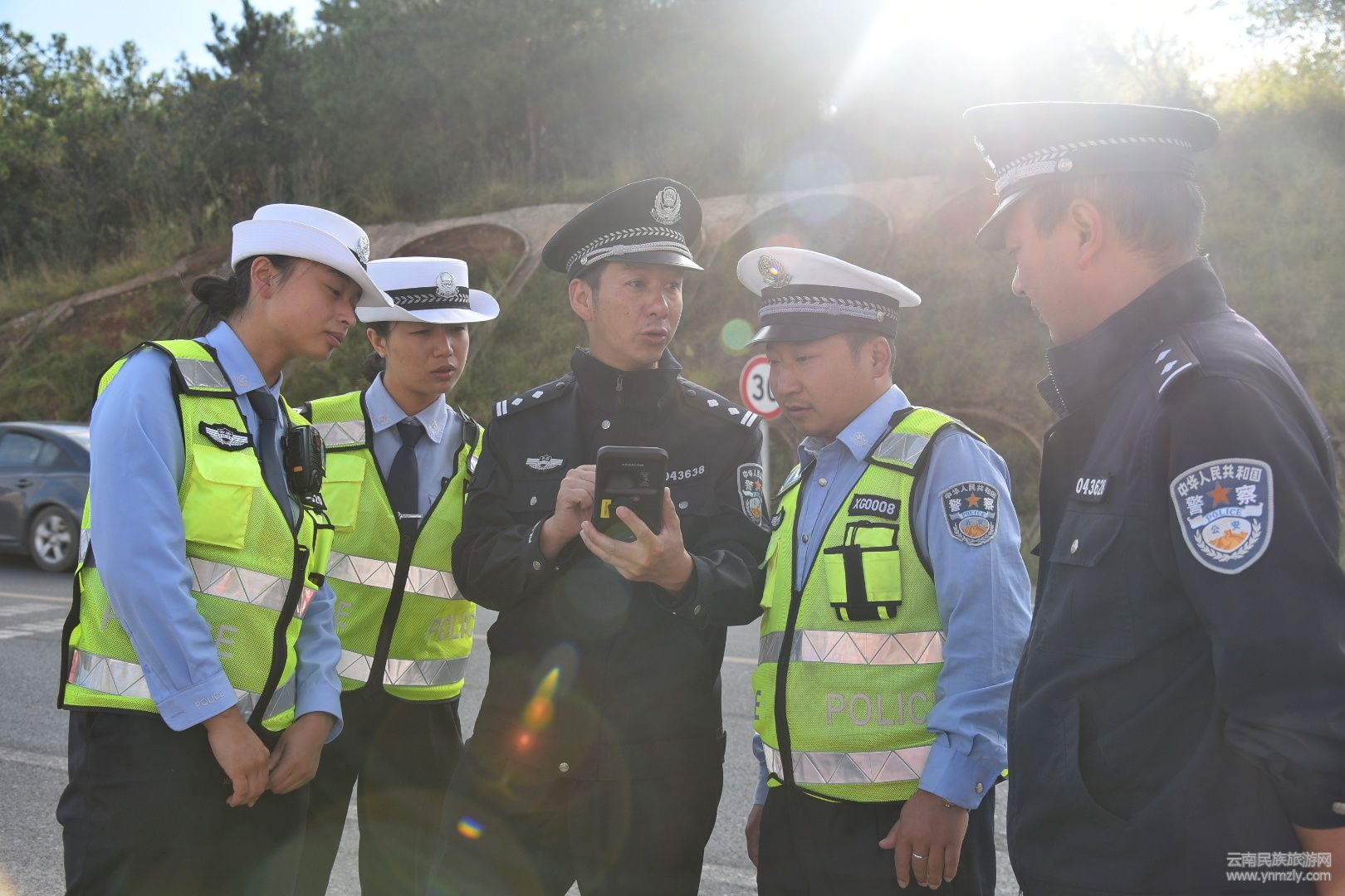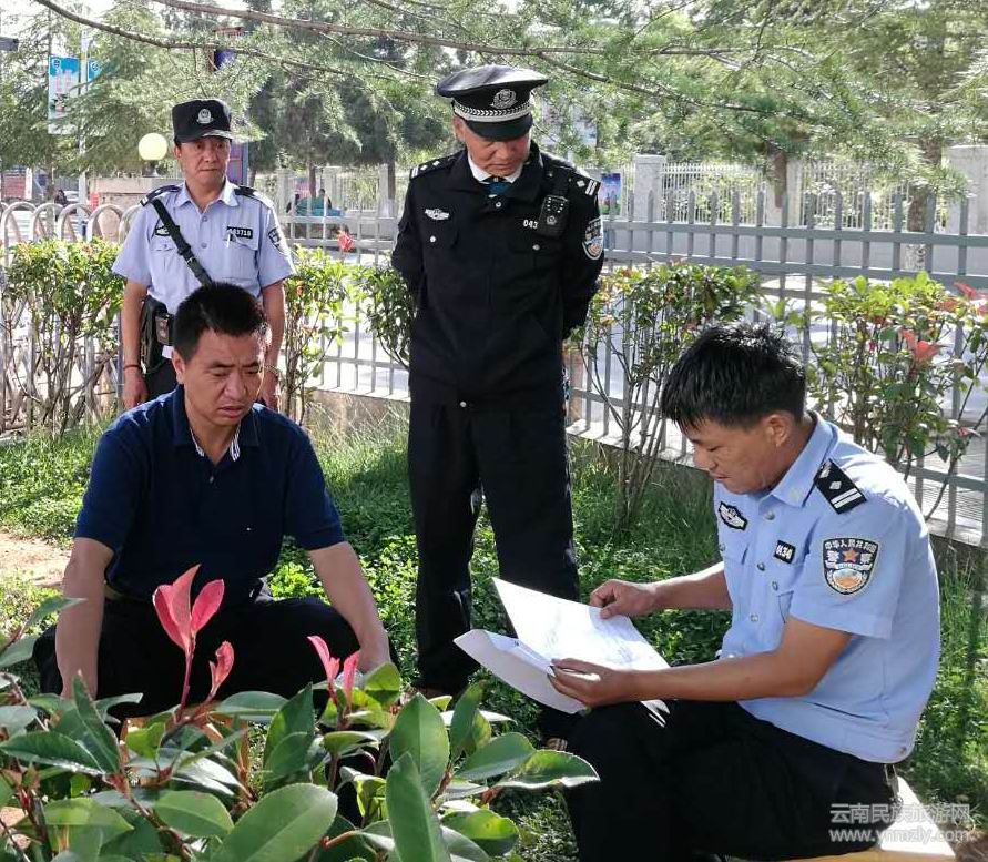 公安局副局長禾汝義(左一)在石寶山景區(qū)站崗執(zhí)勤。