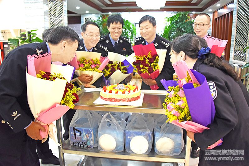 “用甜蜜編成幸福的花籃送給你,愿你在生日里像花兒一樣綻放,讓幸??鞓酚肋h(yuǎn)伴著你,祝您生日快樂!”10月26日,楚雄州公安局交警支隊(duì)黨委組織10月份過生日的民警在支隊(duì)機(jī)關(guān)食堂開展了集體生日慶祝活動,支隊(duì)在家的黨委班子成員、“壽星”及其家屬近30人參加了活動。