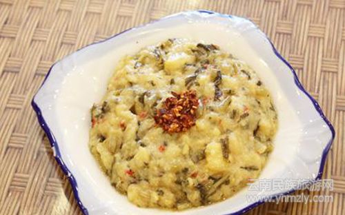 老奶洋芋相信很多人都吃過,但用水淹菜作調(diào)料是傣味吃法。酸菜的爽口遇上洋芋的軟綿,二者融合得恰到好處,中間再點(diǎn)綴上油辣椒、香蔥,胃口頓時(shí)大開。