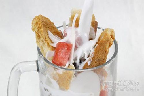 泡魯達(dá)其實(shí)是一種飲品,用西米、煉乳、特制奶油面包干、新鮮椰絲加上碎冰塊制作而成,奶油面包干,泡在奶香濃郁的冰水中,入口即軟,味道超贊。